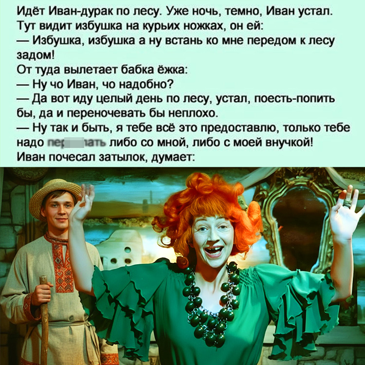 Анекдот про бабу Ягу и Иванушку — это по-настоящему уморительный и современный взгляд на классических героев русских сказок, где магия встречается с житейской хитростью.
