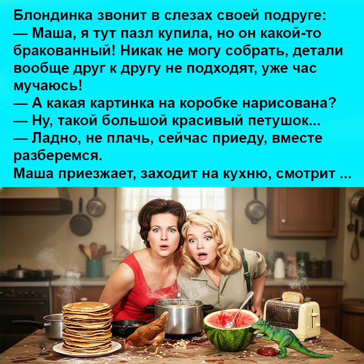 Истории о блондинках и их столкновениях с простыми бытовыми задачами — это неиссякаемый источник позитива. Часто полная уверенность в своей логике и буквальное восприятие реальности превращают сборку обычной картинки (которая в итоге может оказаться вовсе не тем, чем кажется) в настоящий комедийный шедевр. Именно эта обезоруживающая непосредственность делает сюжет таким легким и бесконечно смешным.