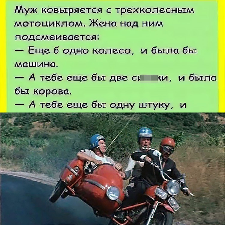 Анекдот про трехколесный мотоцикл — вот это анекдот, концовка просто огонь, совсем не ожидал такого финала!