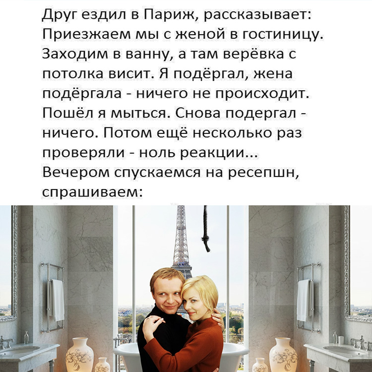 Анекдот про веревку в ванной комнате в Париже